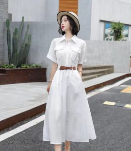 2022 Autumn new banquet mid-length high waist A-line buttoned shirt dress women